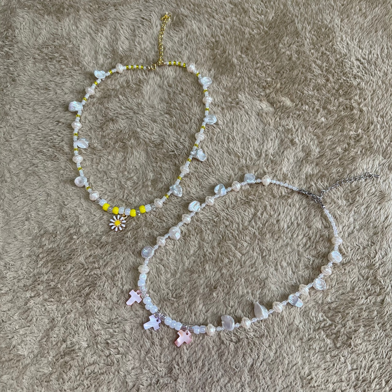 パールとシェルを使った可愛らしい印象