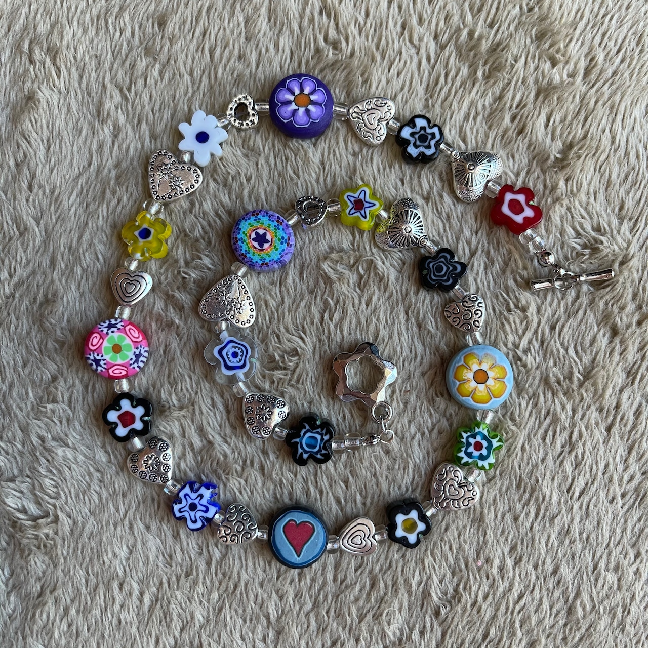 ミルフィオリフラワービーズとシルバーハートの組み合わせが可愛いです♡♡