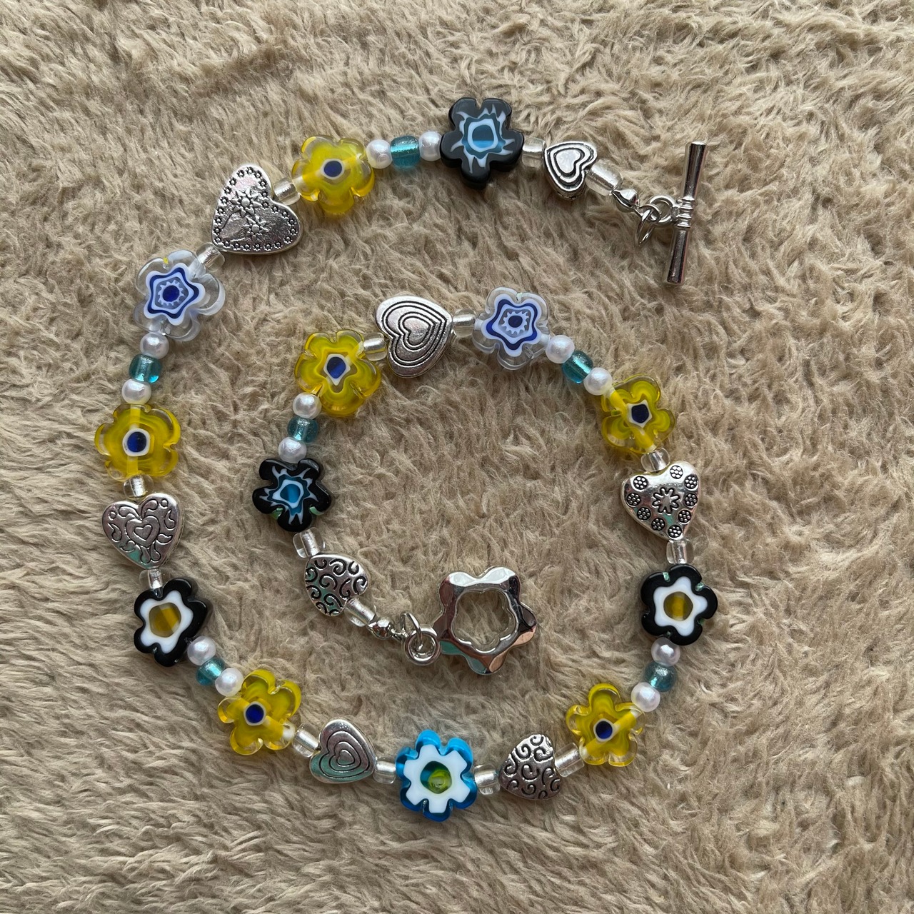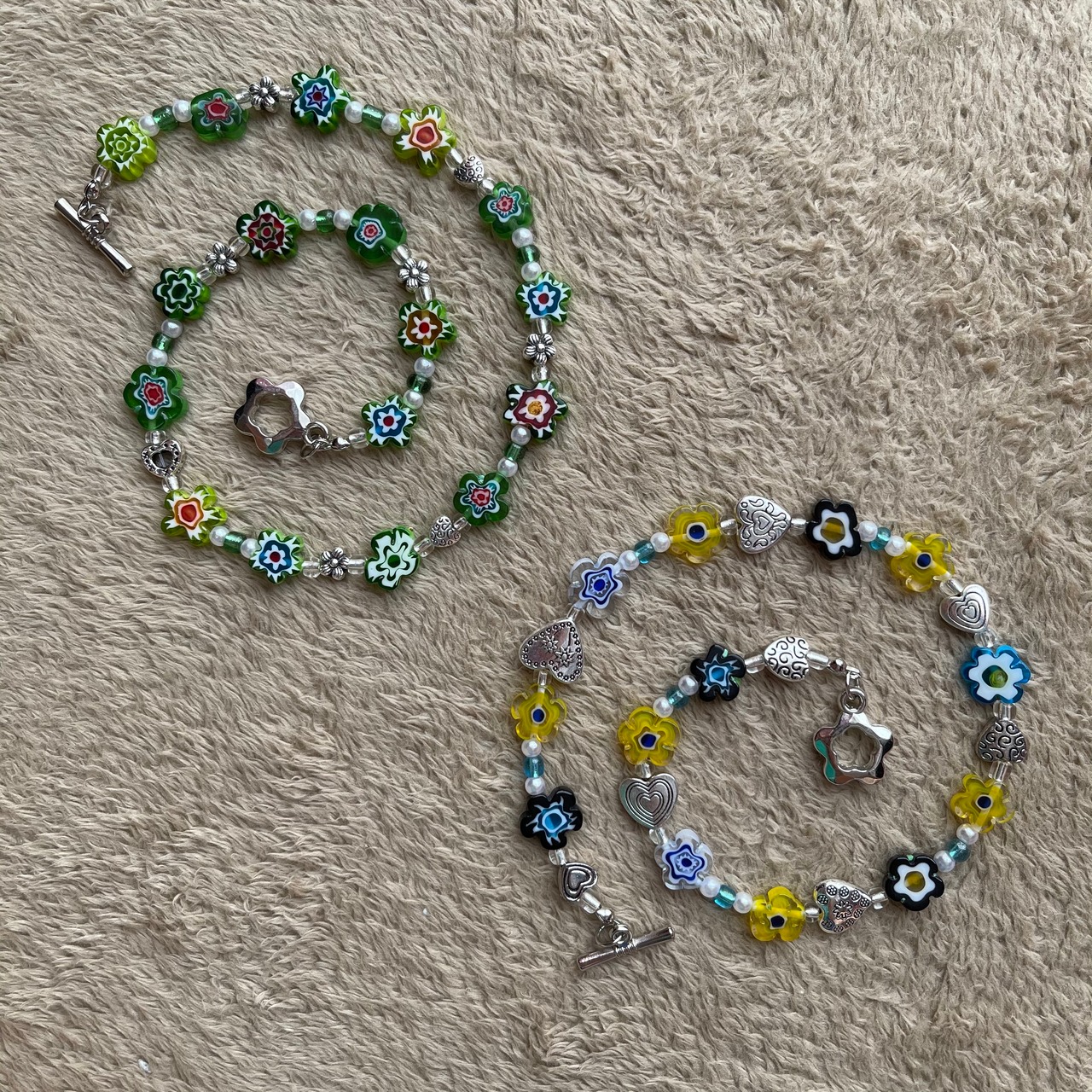 ミルフィオリフラワービーズとシルバーハートの組み合わせが可愛いです♡♡