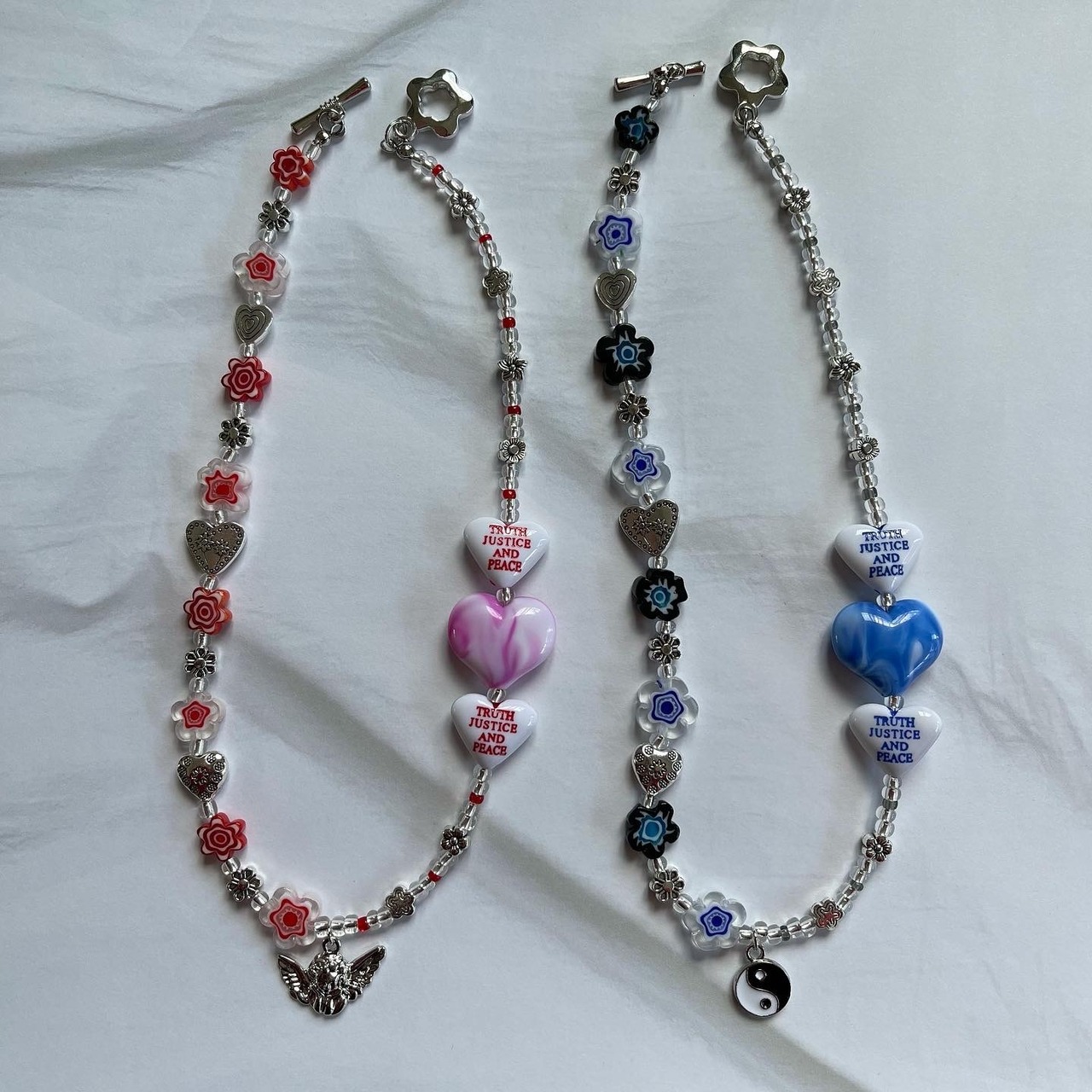 ミルフィオリフラワービーズとシルバーパーツの組み合わせが可愛いです♡♡