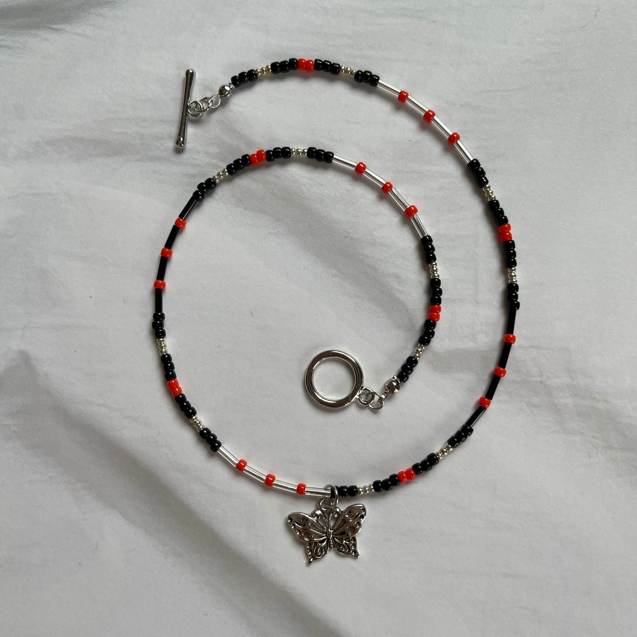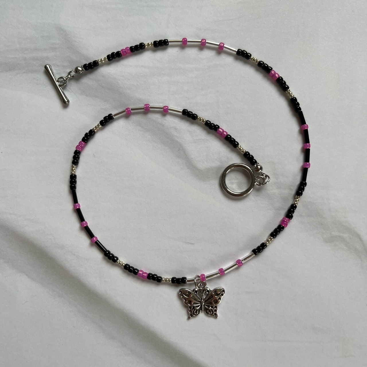 バタフライチャームがついたシンプルで可愛いネックレスです。