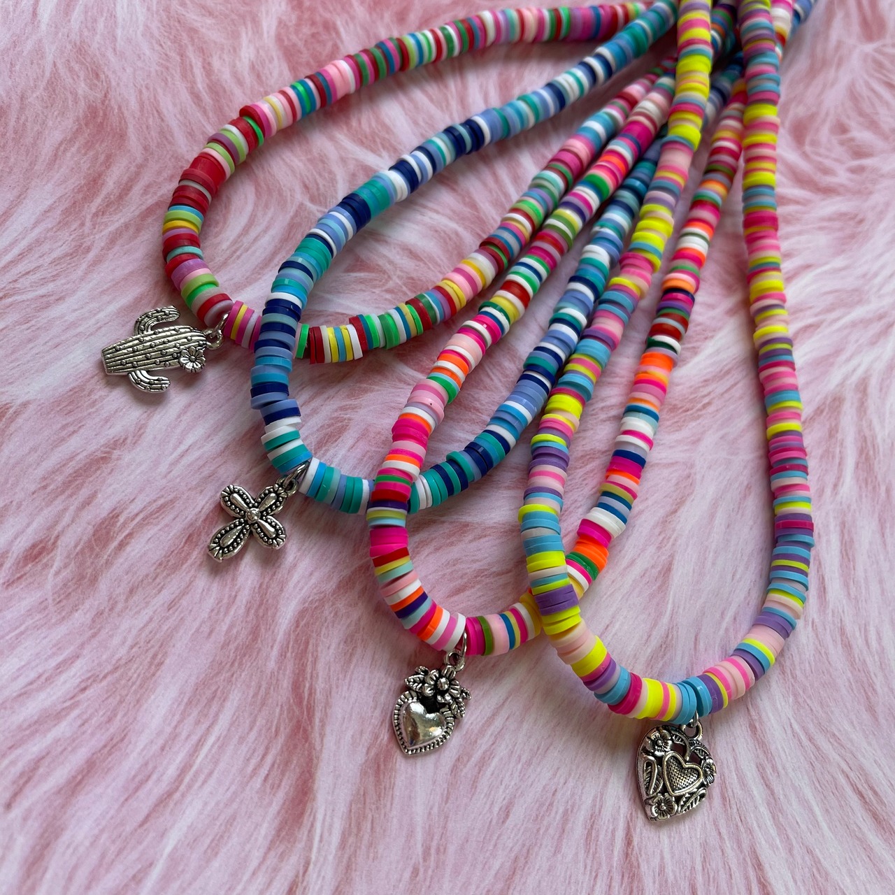 カラフルなクレイビーズネックレス