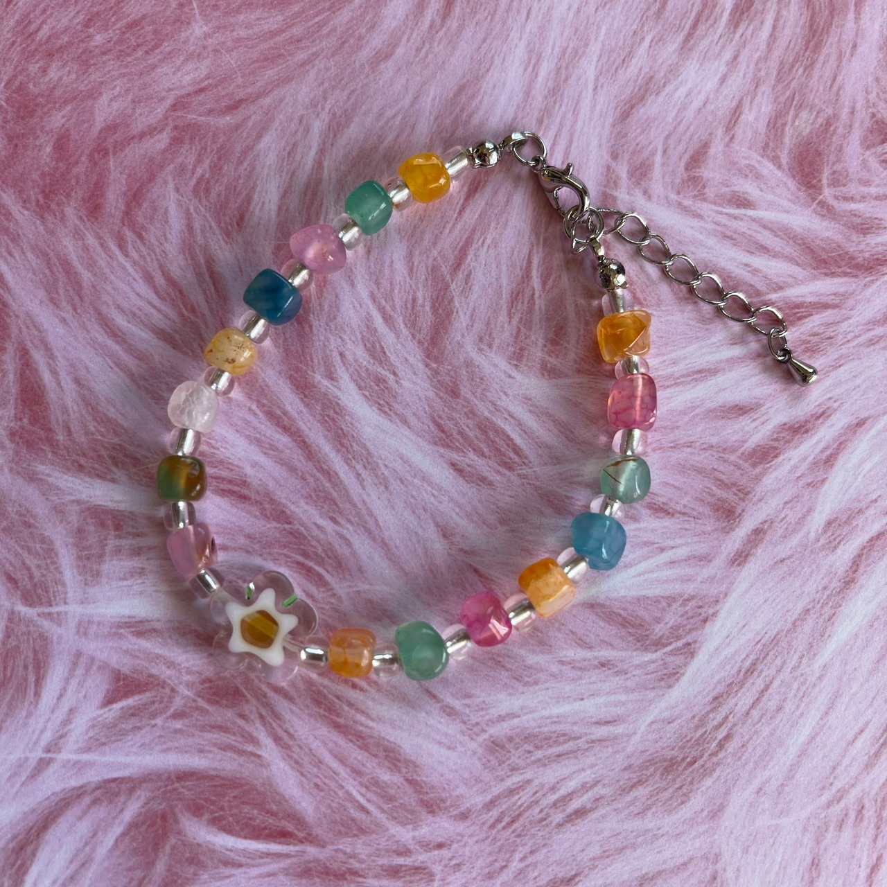 カラフルなガラスビーズと人気のミルフィオリフワラービーズの組み合わせが可愛い印象です♡♡